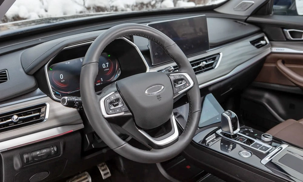 - Отделка интерьера и сидений экокожей чёрного цвета
